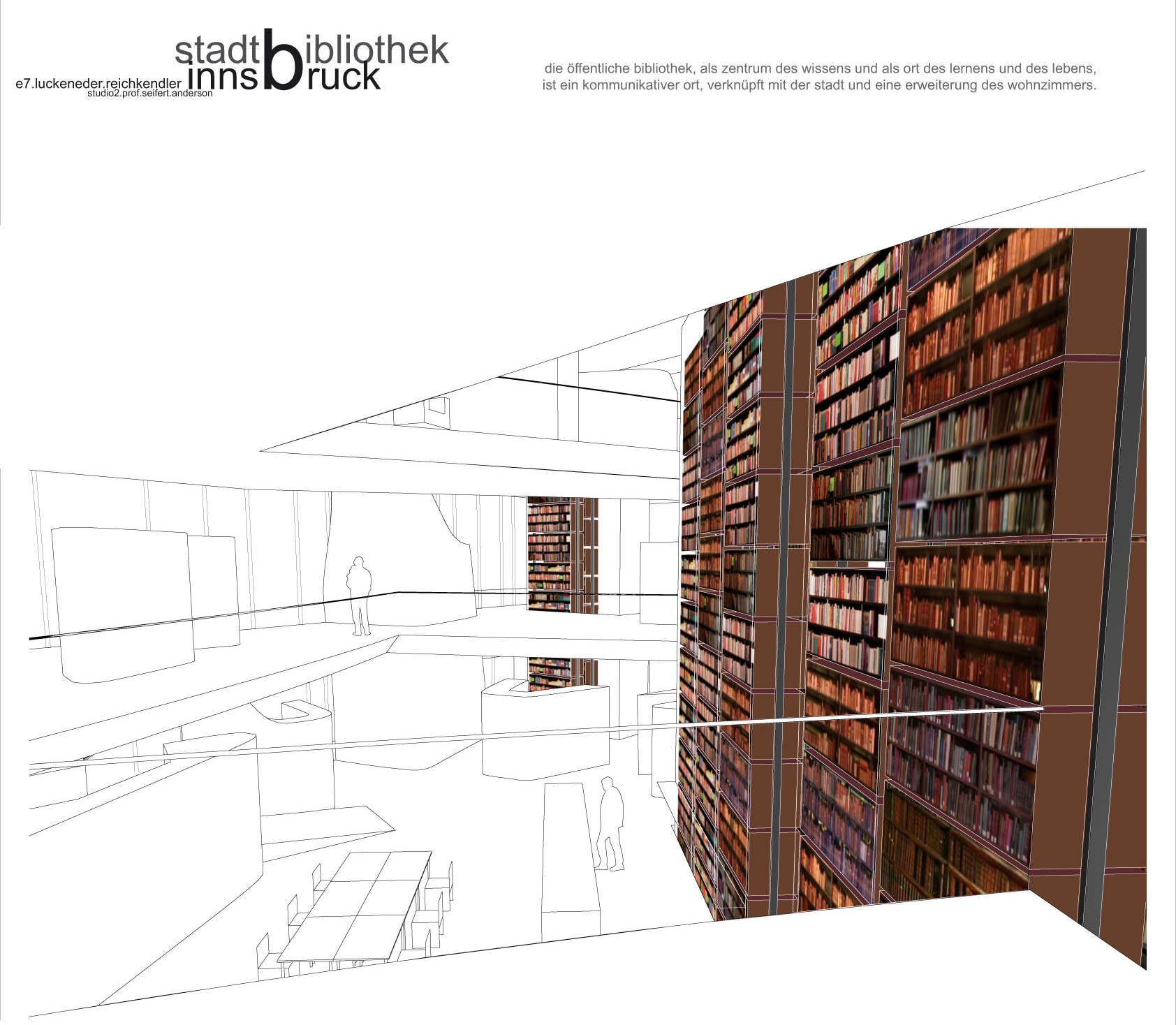 Students were asked to design a library containing digital and physical books for the city of Innsbruck.